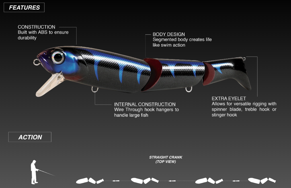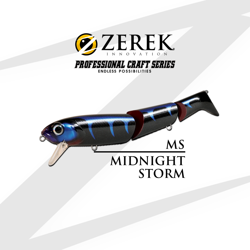 The Zerek Stalker is a jointed wake bait that is designed to attract predators on the top part of the water column at depths of between 0-1 feet. Built with tough ABS plastic and featuring wire through construction, the Stalker leaves a V shaped wake during retrieval that mimics an isolated prey which is disoriented and trying to flee. This vulnerability exhibited by the lure entices predators to zero in on the distress signals and triggers their predatory instincts to attack. The Stalker is available in 180mm and 250mm sizes to cover different fishing conditions.
